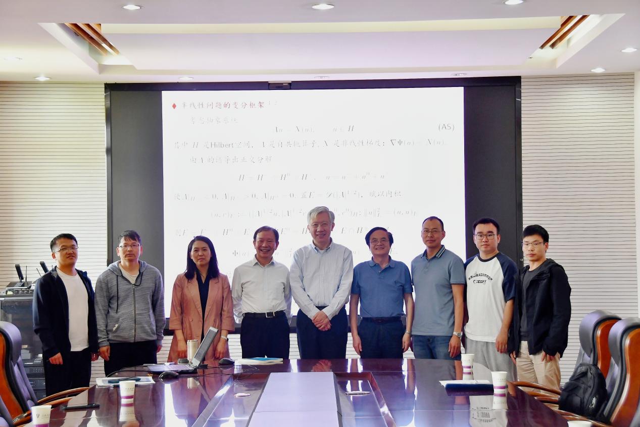 丁彦恒研究员作《Variational Methods and Interdisciplinary Science》报告。丁彦恒,中国科学院数学与系统科学研究院研究员、博士生导师,非线性泛函分析领域著名专家,德国洪堡学者,意大利国际理论物理中心高级客座学者,中国数学会常务副秘书长(2008-2011),中国数学会非线性泛函分析委员会副主任。先后主持2项国家自然科学基金重点项目和多项面上项目。长期从事非线性泛函分析、非线性偏微分方程方面的研究,原创性地发展了强不定问题的临界点理论,在Dirac方程和扩散系统等问题的研究中作出了开创性贡献,研究成果受到国际上广泛关注,应邀到欧美等地数十个高校和研究所讲学,在Springer和科学出版社出版专著多部,在Math.Ann.,Trans.Amer.Math.Soc., Arch.Ration. Mech. Anal. Math., SlAMJ. Math., Anal. J. Funct., Anal., Calc. Var. & PDE.和Nonlinearity等著名学术期刊上发表论文130余篇,论文被引用3400余次。
