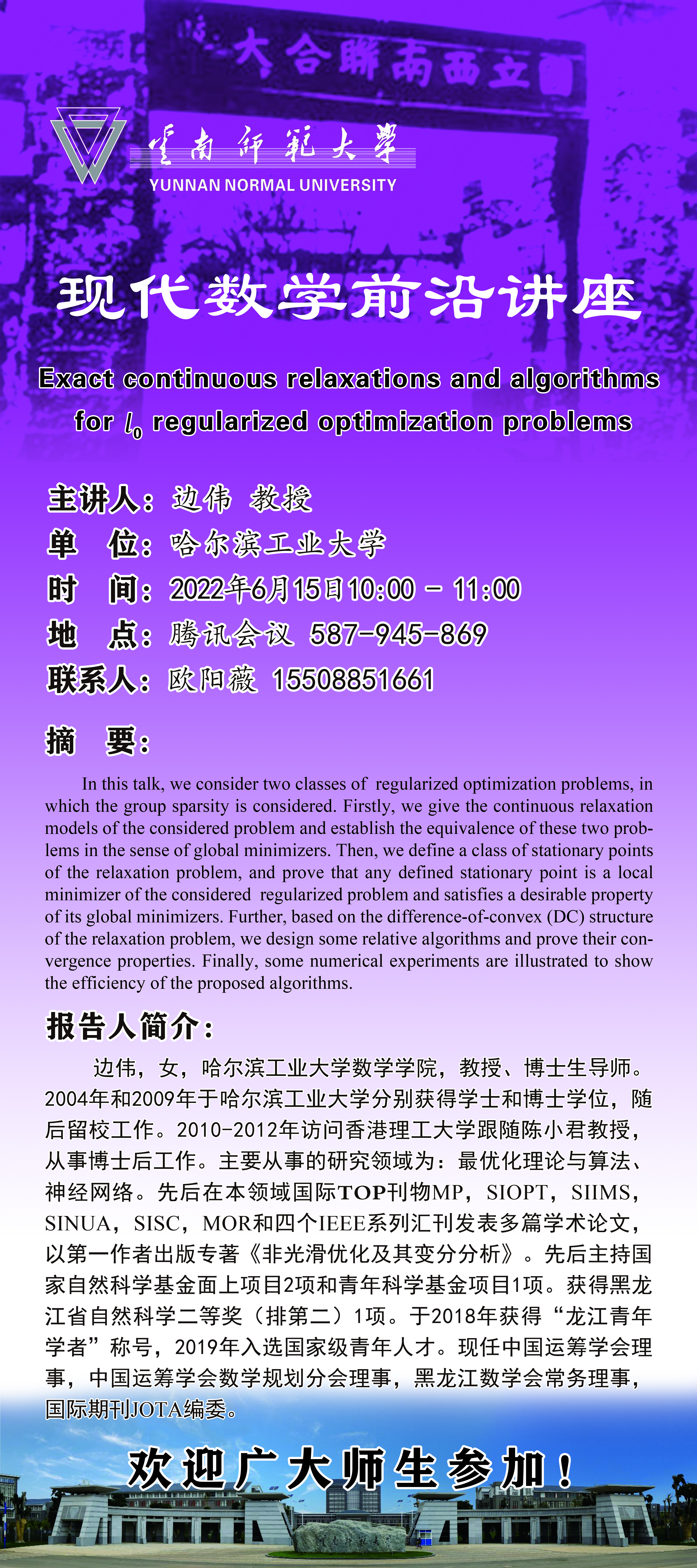 下一条:现代数学前沿讲座 柳彦军 博士 Compactness of exponential nonlinear problems and related applications