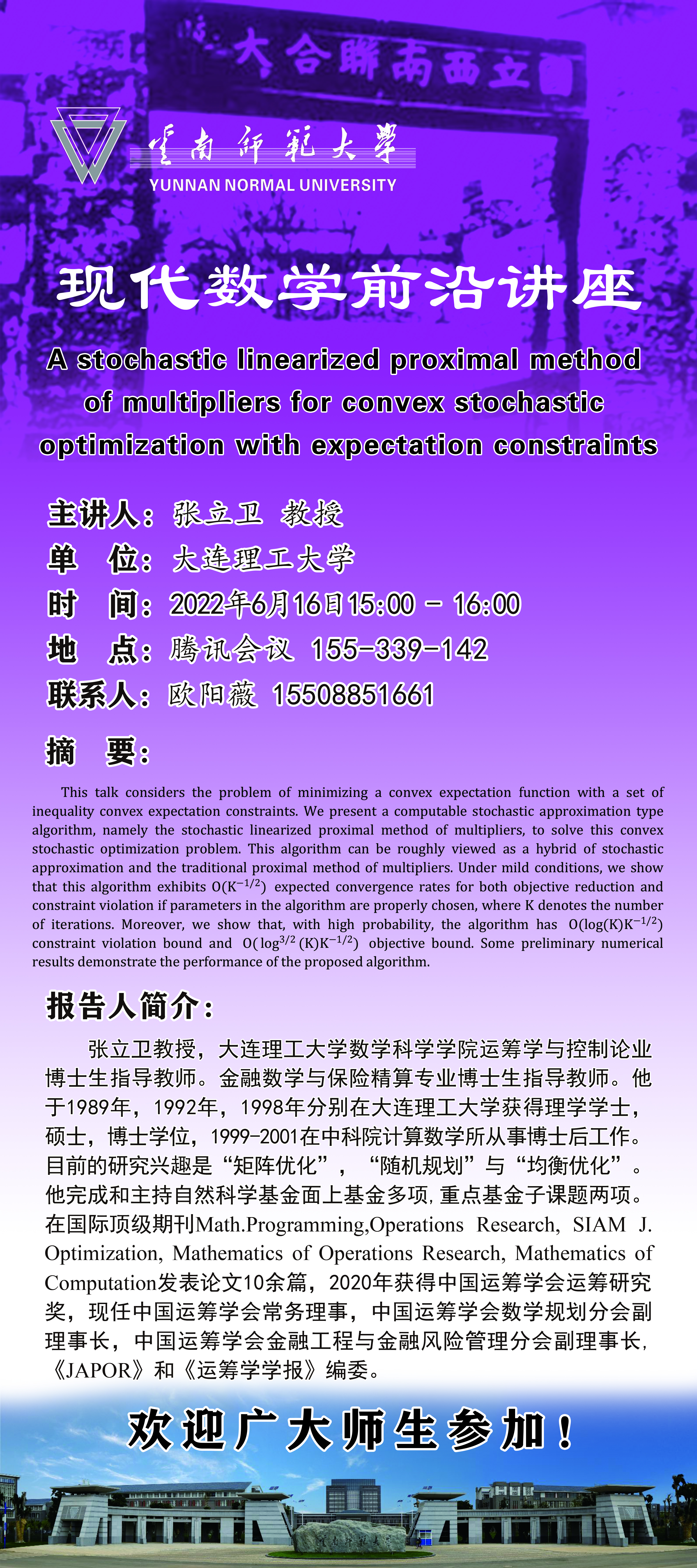 现代数学前沿讲座第005讲 张立卫教授(大连理工大学)