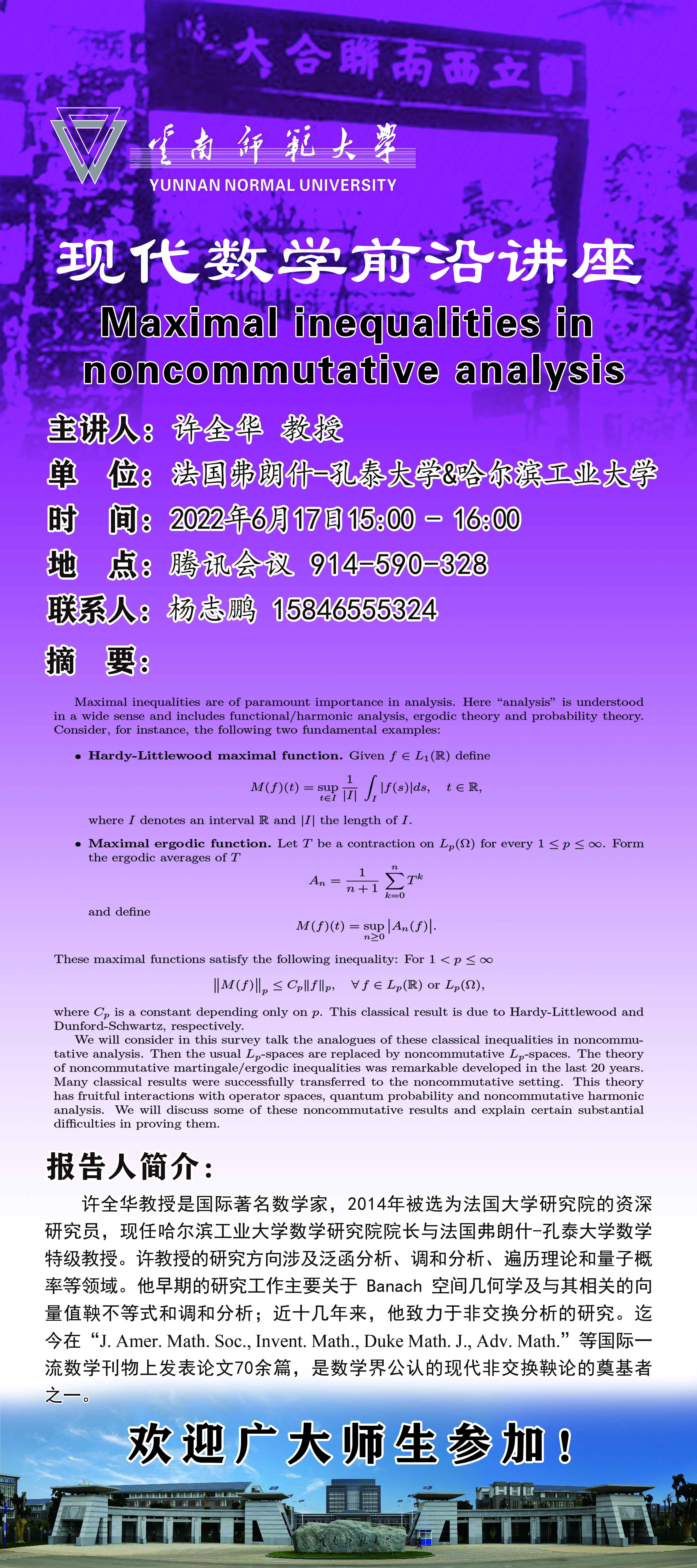 现代数学前沿讲座第007讲 许全华教授(法国弗朗什-孔泰大学&哈尔滨工业大学)