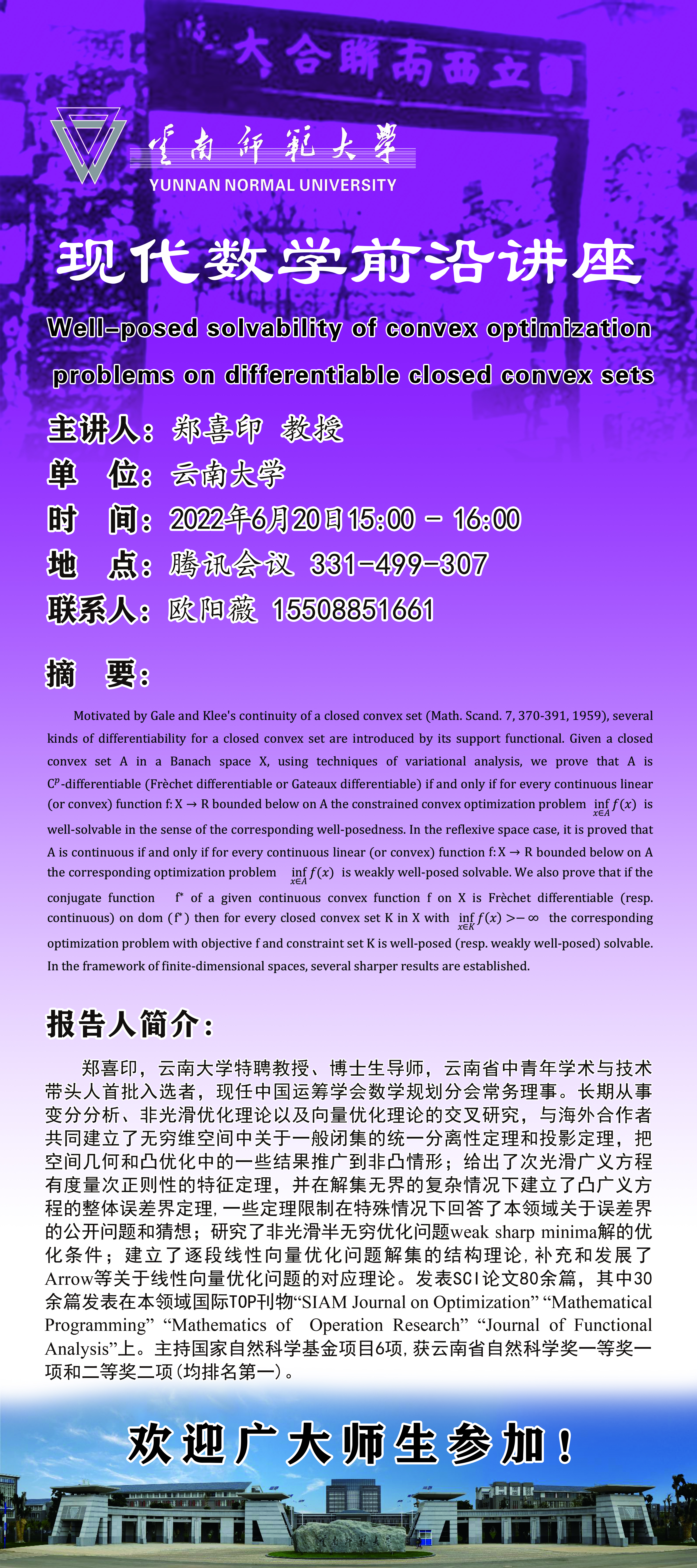 现代数学前沿讲座第008讲 郑喜印教授(云南大学)