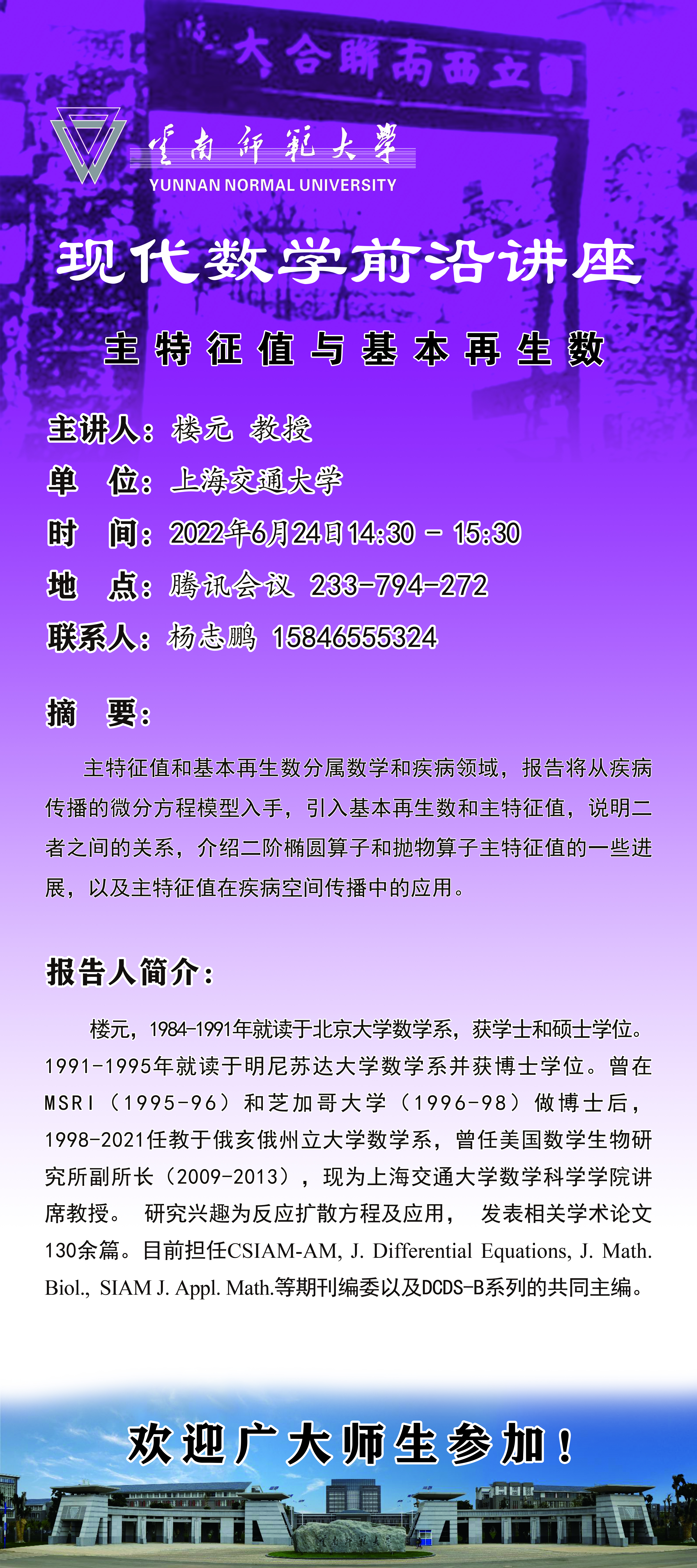 现代数学前沿讲座第008讲 郑喜印教授(云南大学)