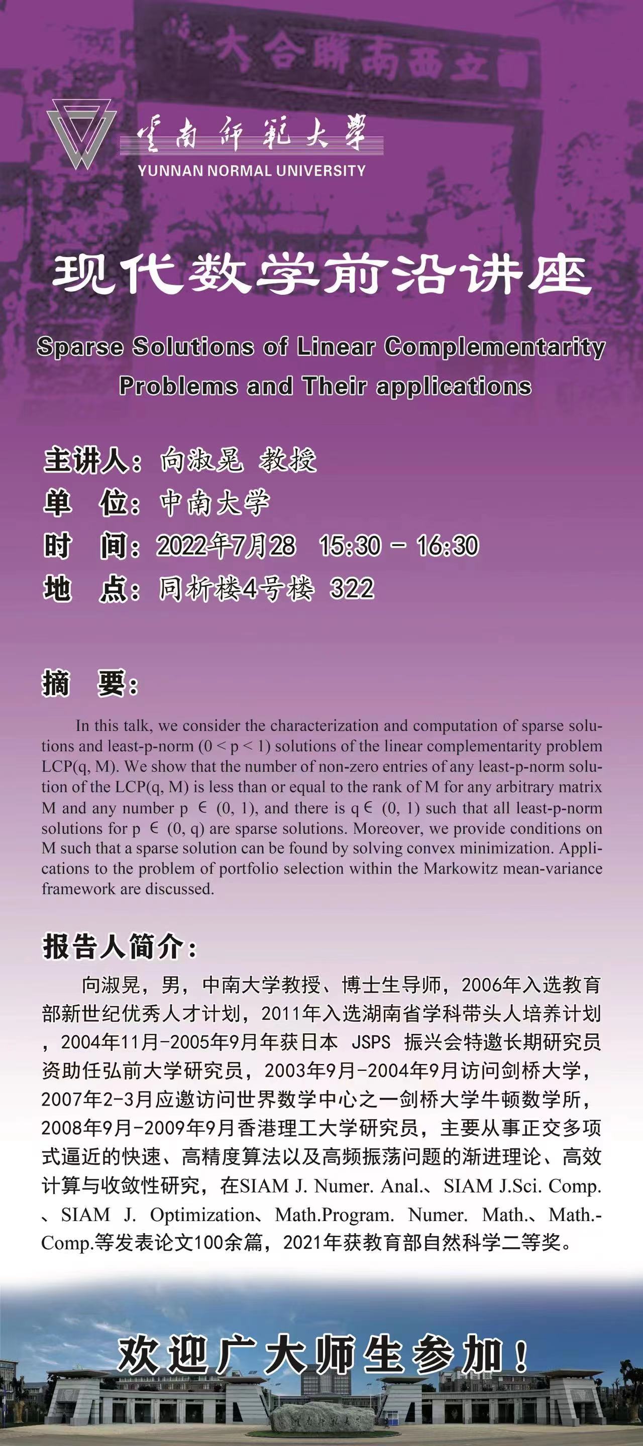 现代数学前沿讲座第012讲 向淑晃教授(中南大学)