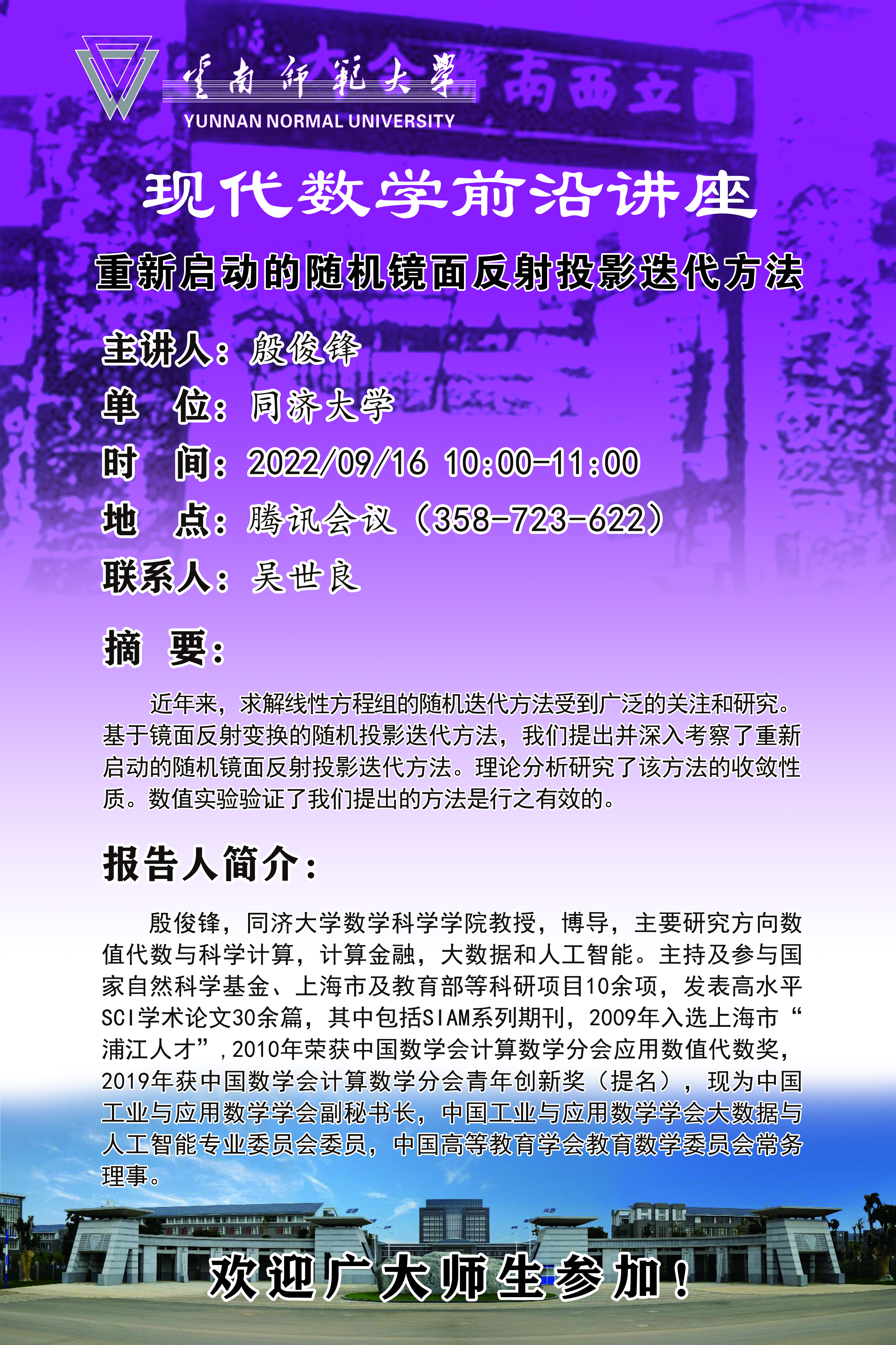 现代数学前沿讲座第014讲 殷俊锋教授(同济大学)
