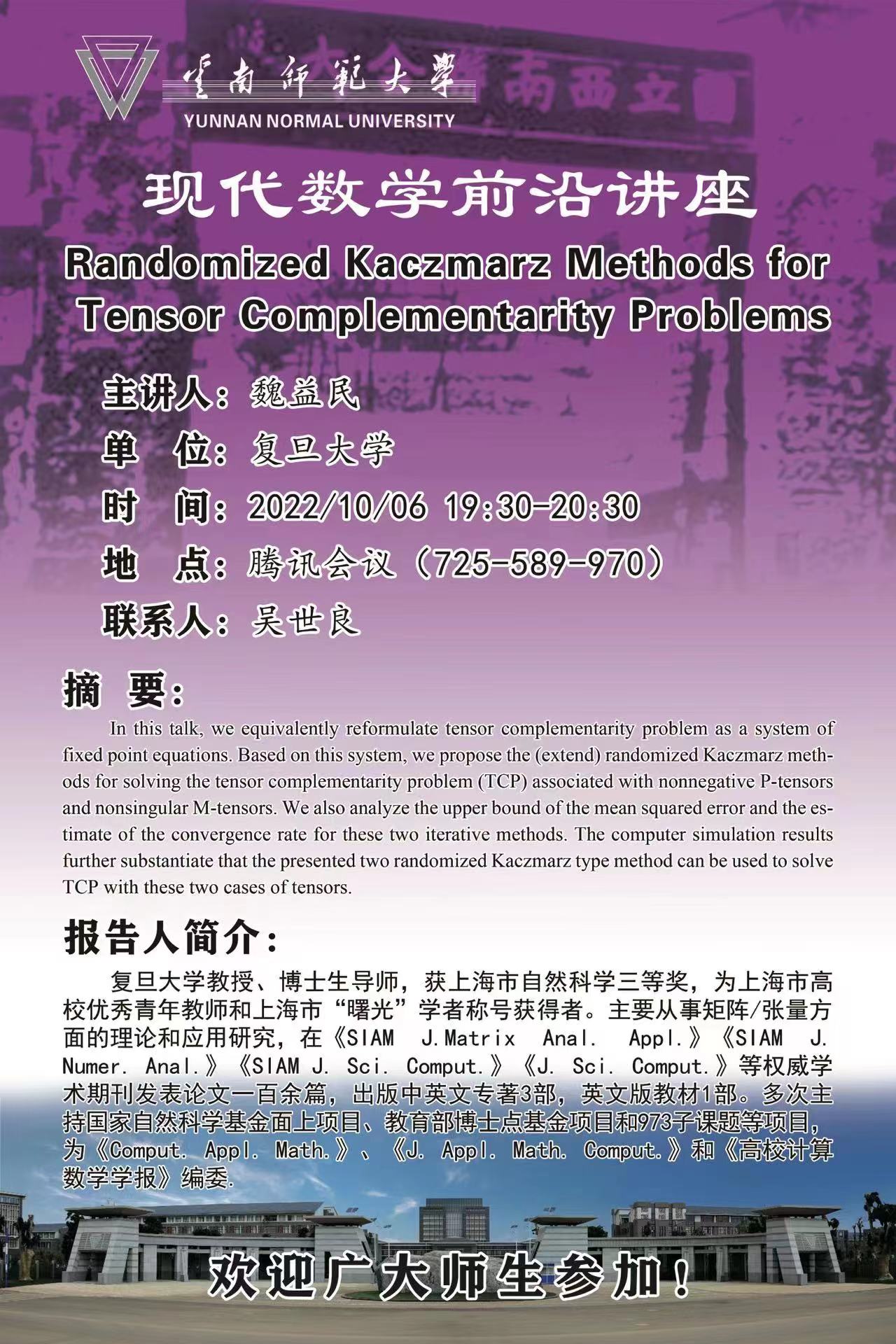 现代数学前沿讲座第022讲 魏益民教授(复旦大学)