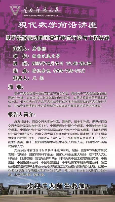 现代数学前沿讲座第026讲 唐家银教授(西南交通大学)