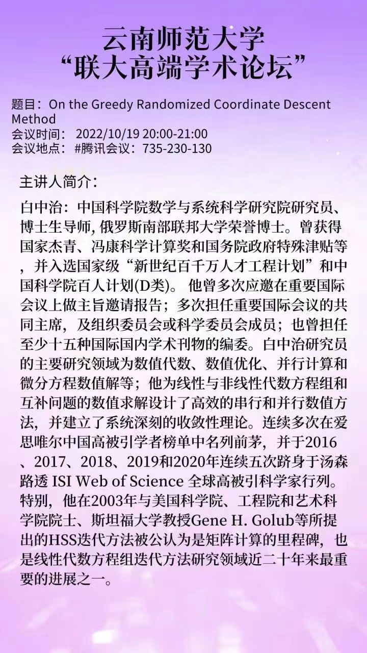 美加墨世界杯官网联大高端学术论坛-白中治研究员学术讲座预告