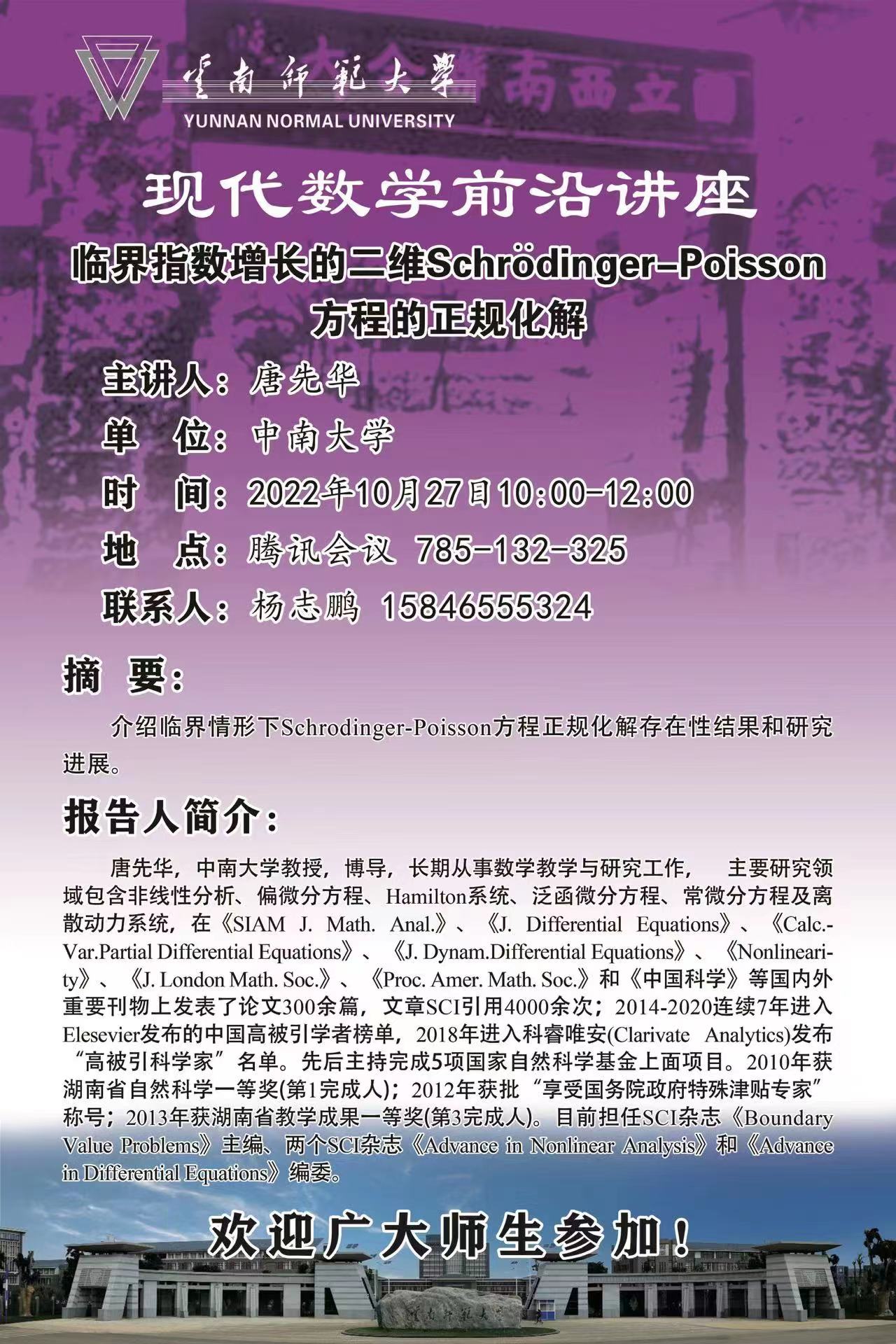 现代数学前沿讲座第028讲 唐先华教授(中南大学)