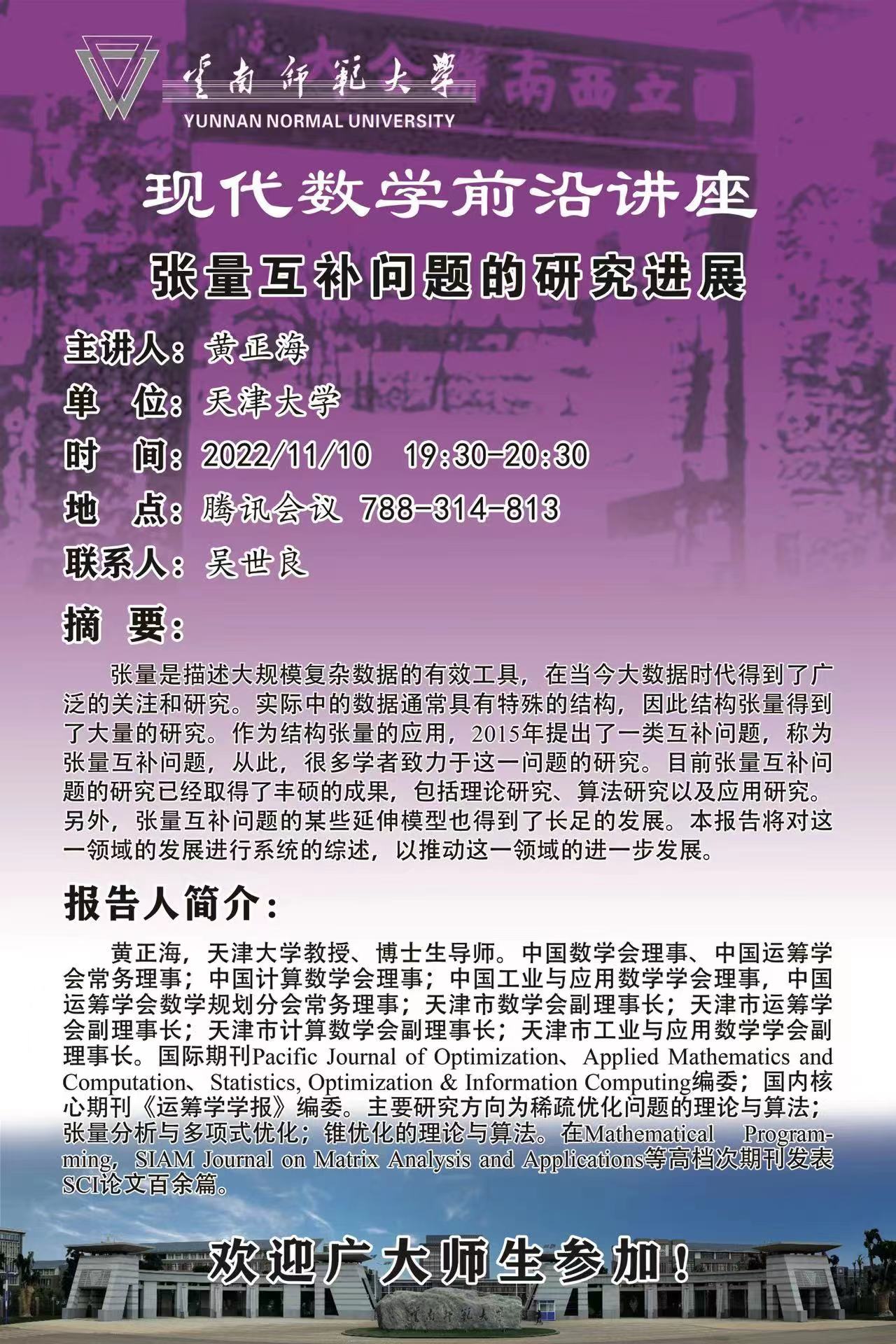 现代数学前沿讲座第032讲 黄正海(天津大学)