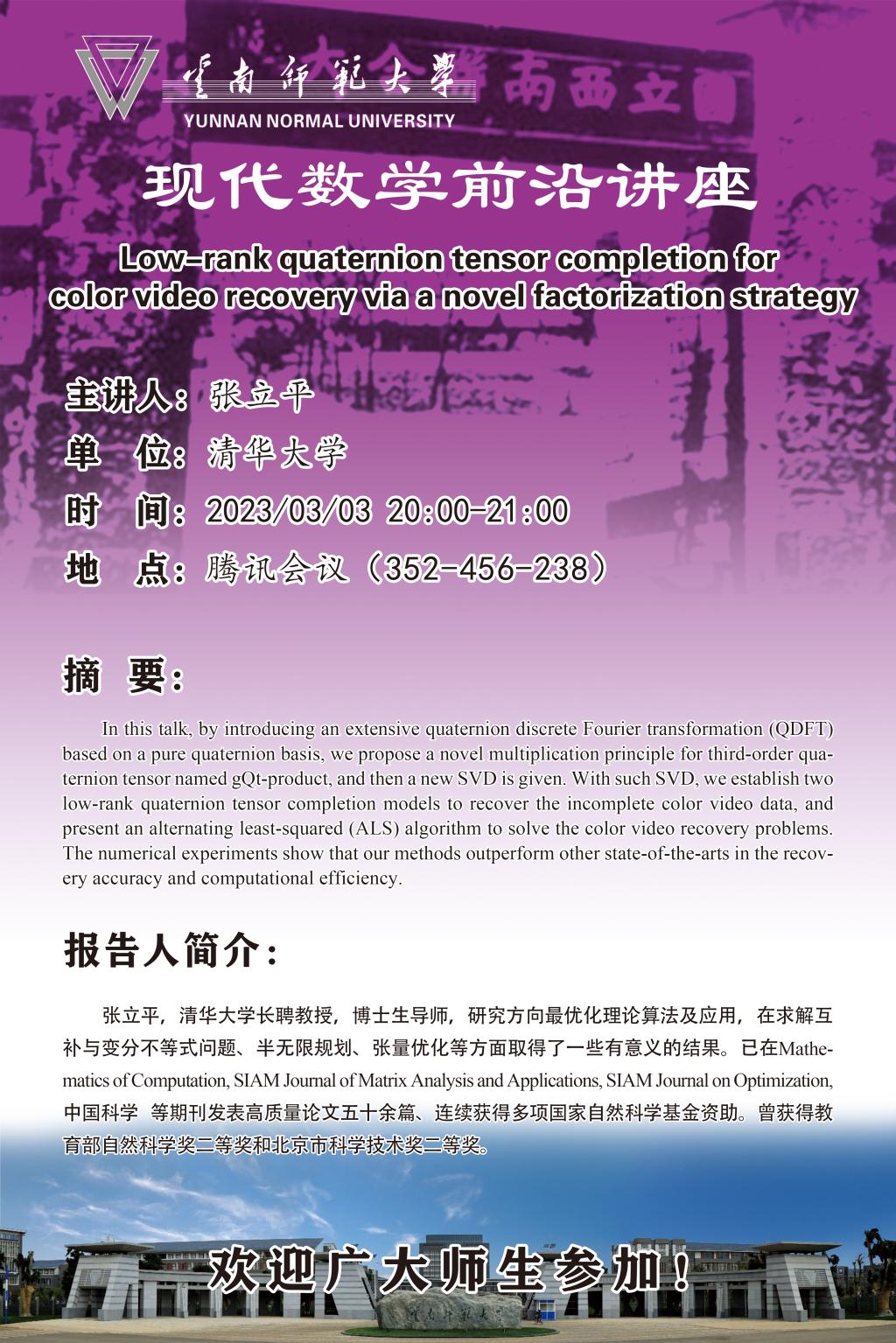 现代数学前沿讲座第038讲 张立平(清华大学)