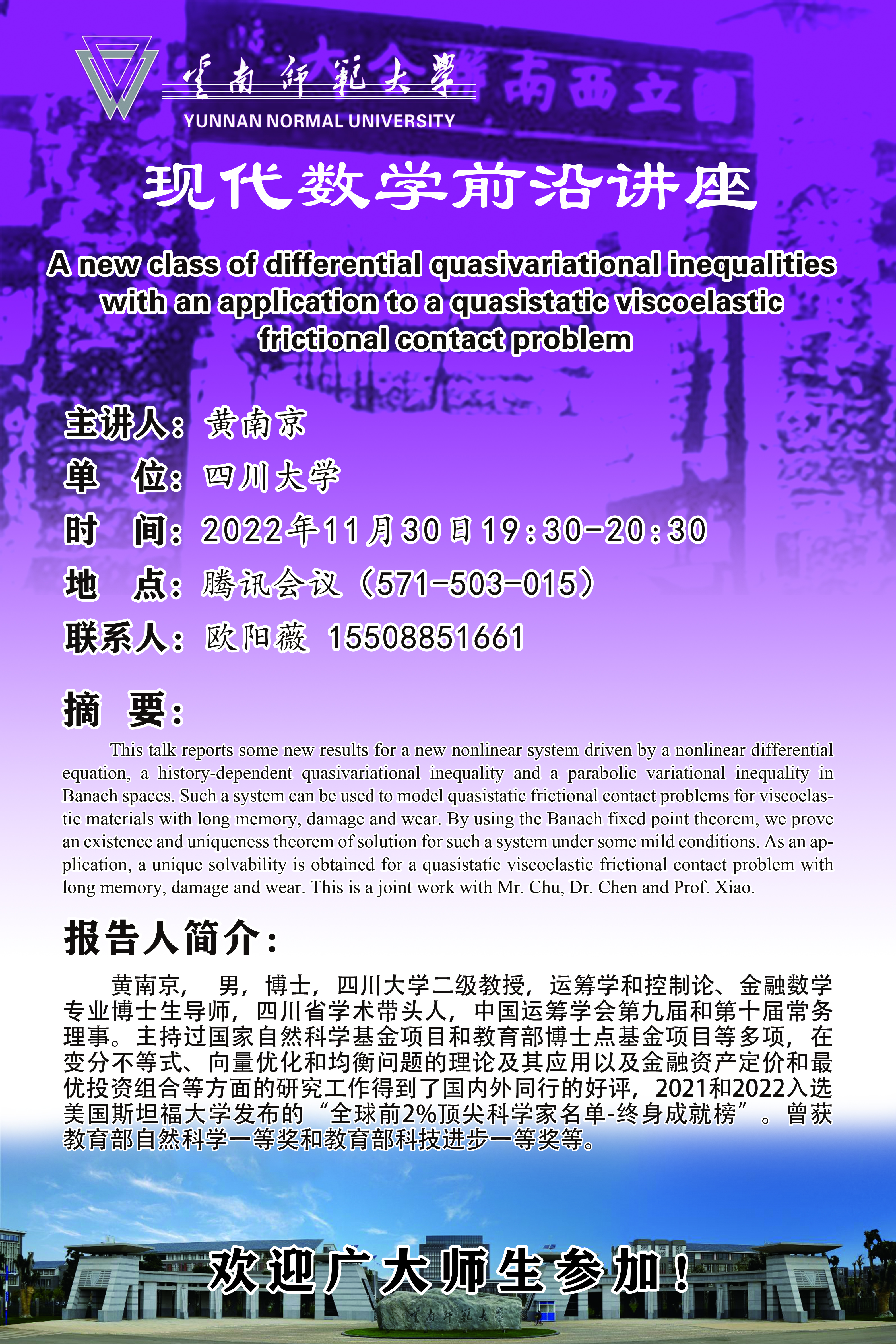 上一条:现代数学前沿讲座第035讲 卢玉峰(大连理工大学)