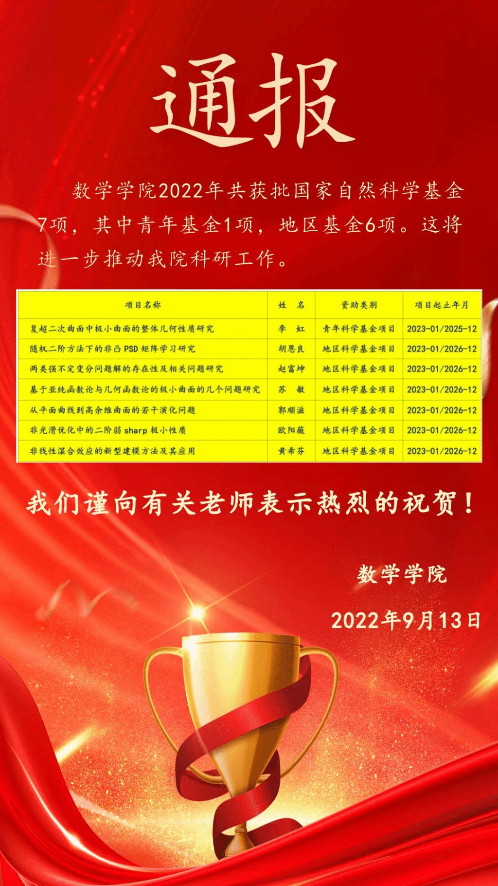 通报美加墨世界杯官方网站2022年获批国家自然科学基金7项