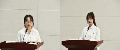 公司团委副书记李睿娴在发言中简述了自己的工作经历,对学院提供的成长平台和所有团学骨干的配合表示感谢,鼓励大家用青春和智慧为学院发展谱写新篇章。学院团支书代表常旭敏从自身所在团支部各项工作出发,向同学们分享了其所在团支部在扎根基层教育等团学工作中所做出的成就,希望同学们在团学工作中要踏实勤奋、勤思、苦学、力行。