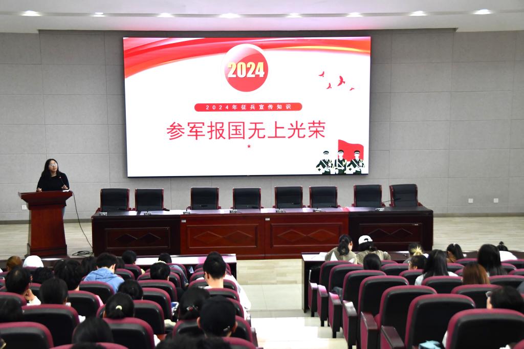辅导员刘欣婷以“就业,是你们的人生新起点”为主题,深入剖析了当前的就业形势,指出就业是人生道路上的重要选择,也是实现自我价值的重要途径。他鼓励同学们积极面对就业挑战,提早做好职业生涯规划。辅导员李睿进行了征兵动员。以“投身军营,炼就人生”为主题,号召同学们积极响应国家的征兵号召,用实际行动为国家做出贡献。