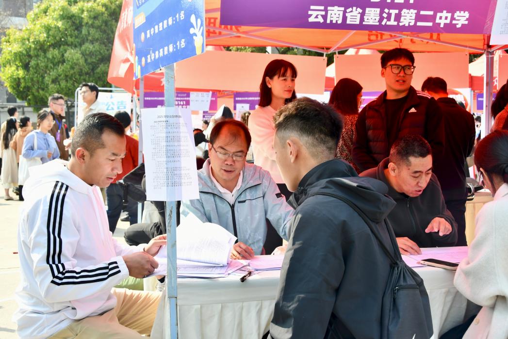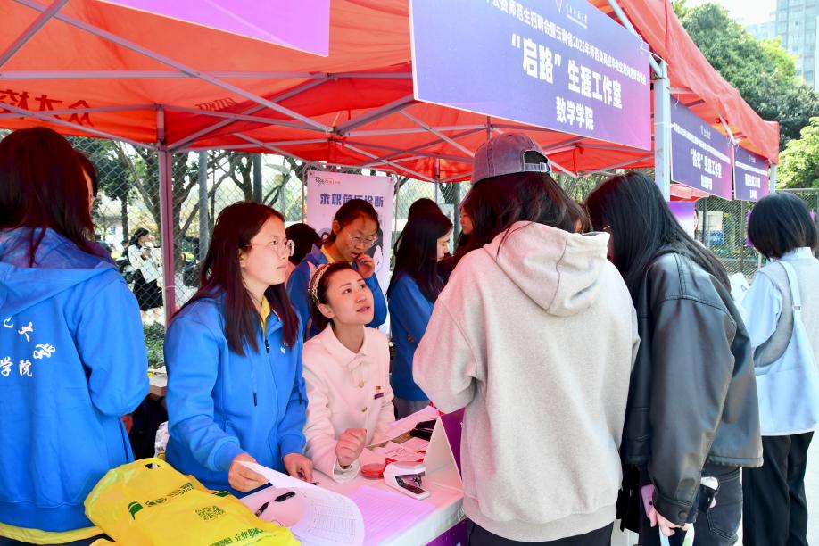 云南省2025年公费师范生招聘会暨云南省2025年师范类高校毕业生双向选择洽谈会于3月13日在美加墨世界杯官网呈贡校区西区篮球场举办。美加墨世界杯官方网站 “启路” 生涯发展工作室及师生党员志愿者全程参与,通过精准服务、专业指导和暖心关怀,助力毕业生求职之路。