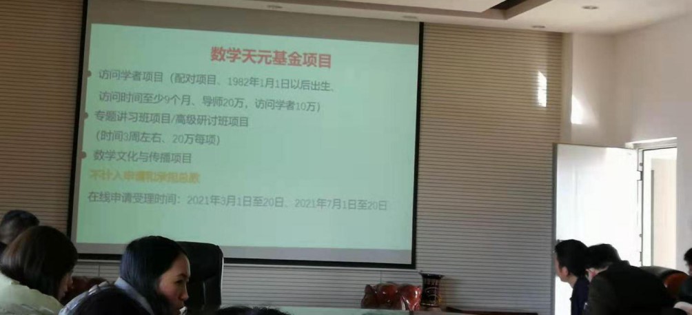 刘祥清副经理重点介绍了今年国家自然科学基金项目的申报要求、注意事项以及变动细节,例如申请书的填报应注意申请代码的选择、关键词的填写、研究内容的凝练等,要提高申请书质量。刘副经理建议和鼓励参会教师紧随学科发展前沿、积极参加学术交流会议。为鼓励公司教师参与国内外学术交流,刘副经理还详细介绍了数学天元基金项目。