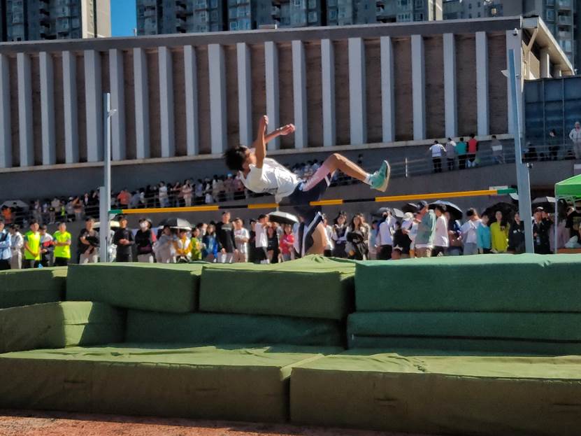 赛场上,选手们轻节如燕,威猛如鹰,为挑战自我而奋斗,为集体荣誉而拼搏;赛场下,观众们阵阵有力的助威,声声有劲的呐喊,欢呼声,加油声交织在一起。后勤工作人员认真负责,照顾全面,为他们送去温暖。