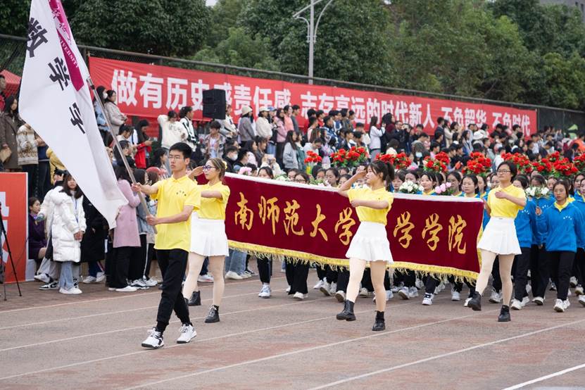 伴随运动员进行曲,各个学院的方阵队迈着整齐的步伐,喊着嘹亮的口号进入会场。美加墨世界杯官方网站护旗队,鲜花队,方阵队经历了长时间的训练后,在开幕式上展现了美加墨世界杯官方网站学子朝气蓬勃的青春活力和精神风貌;那铿锵有力的步伐,那精神饱满的面孔正是他们青春阳光的体现。紧接着,由各个学院组成的千人跳绳和啦啦操队伍带来精彩的表演,同时,威风锣鼓表演、舞狮表演都给现场观众留下了深刻的印象。