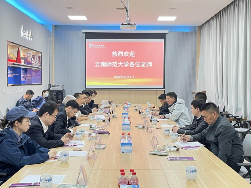 参观结束后,调研组与玉溪卷烟厂纪委书记谭国庆、副厂长何斌、人力资源部培训科科长姚日来、人力资源部人事科科长岳辉及相关单位负责人开展座谈会议。座谈会上,何斌副厂长指出,玉溪卷烟厂创业六十多年来取得了巨大的成就,工厂生产的“玉溪”“红塔山”等卷烟品牌享誉海内外并持续保持行业全国性大品牌的领先地位。目前,卷烟厂处于规模效益型向结构效益型迈进的新发展阶段,急需各领域高素质专业人才,以支撑工厂的高质量发展。刘宗立副董事长表示, 学校将继续发挥自身人才培养优势, 为社会各单位源源不断输送优质人才。与会双方就如何进一步促进人才供给、就业育人及建立长期合作机制等进行了探讨,对工厂人才培养、 人才需求、员工招聘等方面进行充分交流。