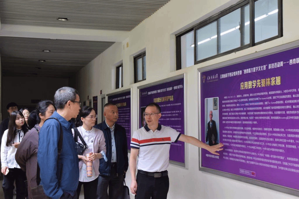 检查组组长尚朝秋,成员杨苏、王可心,公司科技处处长李明、副处长李灿松,在副经理刘祥清(主持工作)和科普基地负责人引导下先后实地参观了美加墨世界杯官方网站杨武之雕塑、院史馆、西南联大数学教授文化墙、资料室、西南联大数学名人文化墙、数学知识文化墙、科普展教室、智慧教室、动态几何软件展教室等科普场馆和设施。检查组体验了数学科普活动,对科普基地有了充分认识,对公司科普工作开展情况表示充分肯定。