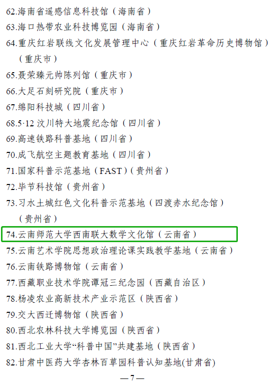 近日,教育部发布了《教育部办公厅等八部门关于公布“大思政课”实践教学基地名单的通知》(教社科厅﹝2022﹞31号),公布了首批“大思政课”实践教学基地,包括科学精神,工业文化,美丽中国,抗击疫情,中华优秀传统文化、革命文化、社会主义先进文化,脱贫攻坚、乡村振兴,党史新中国史教育共7个专题实践教学基地。公司省级科学普及教育基地“西南联大数学文化馆”被教育部和科学技术部联合设立为“科学精神专题实践教学基地”。