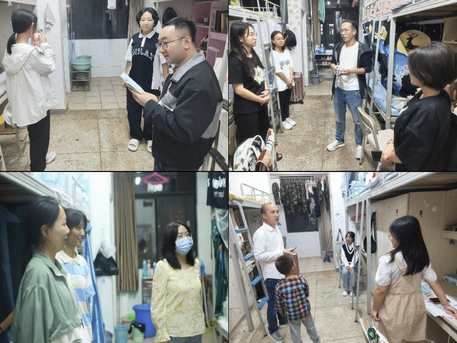领导和老师们先后走访了东区三栋女生公寓和东区九栋男生公寓。老师们亲切地与新生进行交谈,关心他们是否适应新的学习和生活环境,了解同学们的家庭状况、兴趣爱好等。