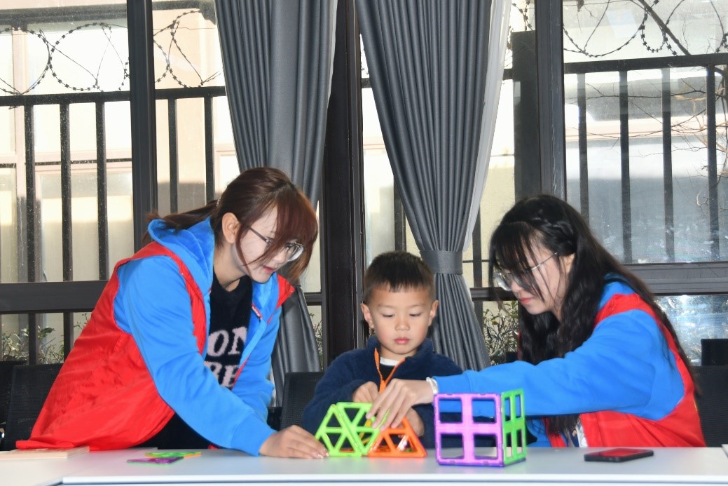 在动手探究的过程中,志愿者会引导小朋友们对模型进行正确组装,帮助小朋友们解决困难,并在小朋友们遇到困难时加以鼓励和指导,提升小朋友们的学习热情。小朋友们勤学好问,认真学习;志愿者们循循善诱,和蔼可亲,现场学习氛围十分融洽。小朋友们在学习过程中收获了新鲜且有趣的数学知识,锻炼了思维能力;志愿者们也在活动中锻炼了教学能力,感受到了教育的温暖。在活动最后,志愿者向小朋友们送出一份小礼物,并和小朋友一起合影留念。