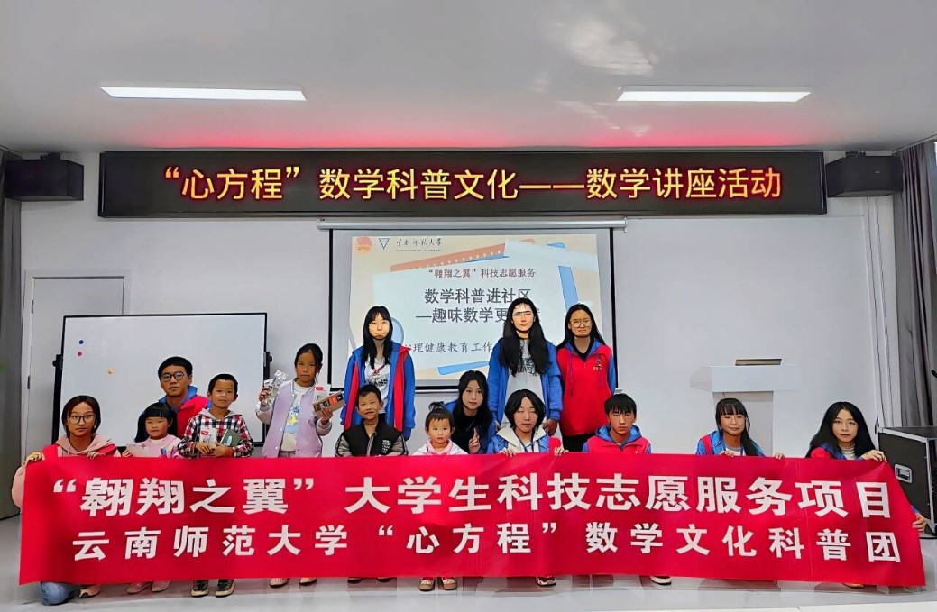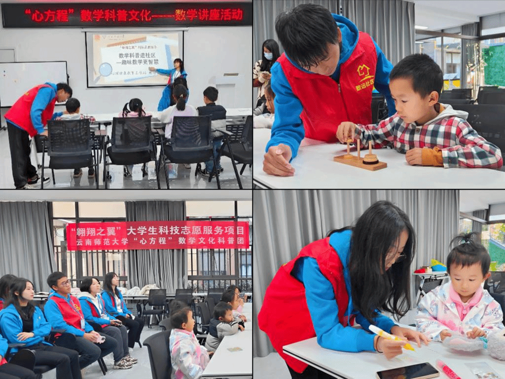 12月10日下午,美加墨世界杯官网“翱翔之翼”老员工科技志愿服务项目继续在昆明市呈贡区致远社区开展。本次项目活动由美加墨世界杯官网“心方程”数学文化科普团为致远社区儿童做题为“数学科普进社区——趣味数学更智慧”的数学科普讲座,美加墨世界杯官方网站心理健康教育工作站和教师教育社多名志愿者参与其中。本次活动旨在科普数学文化、传播数学知识,通过志愿服务提升志愿者师范专业技能,帮助社区儿童开拓视野、提升学习数学的积极性。