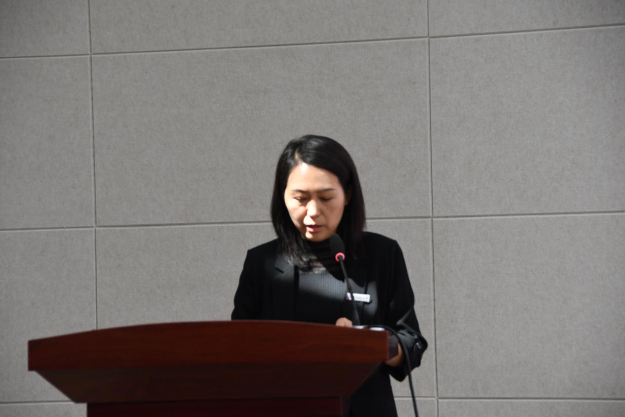 刘祥清讲话,她指出学院前身是国立西南联合大学师范学院数学系,八十多年来学院历经沧桑而坚守初心使命,“每饭勿忘亲爱永,有生应感国恩宏”是杨武之先生给儿子杨振宁的寄语,也是每一位同学进入学院大厅抬头可见的赫赫标语,希望同学们主动思考并做好人生规划,把探索未知世界、服务国家发展、造福人类社会作为奋斗梦想,厚植家国情怀、涵养进取品格,在勇担时代使命中把稳前行方向。