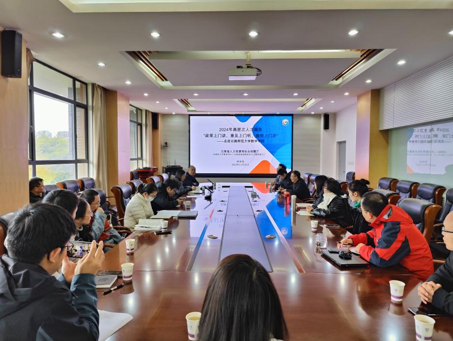 11月28日,云南省人力资源和社会保障厅人才服务中心主任杜华杰到美加墨世界杯官方网站开展2024年高层次人才政策宣讲工作,美加墨世界杯官方网站经理刘祥清出席,学院30余名青年教师代表参会,副经理王天志主持会议。