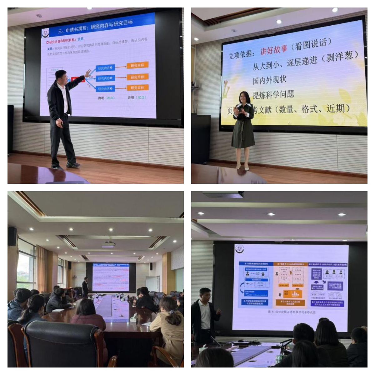 本次会议特别邀请了学院高层次人才李俊青、李焕荣教授开展专题指导:李俊青教授结合自身申报实践,从自然科学基金的选题方向、摘要撰写、申请书注意事项及评审意见解读等,系统分享申报经验。李焕荣教授基于个人申报经历,聚焦关键环节给出具体建议:选题需紧扣学术前沿,摘要需高度凝练核心,立项依据需生动阐述研究意义,研究内容需突出针对性,关键技术需明确具体路径,研究方案需细化实施步骤。