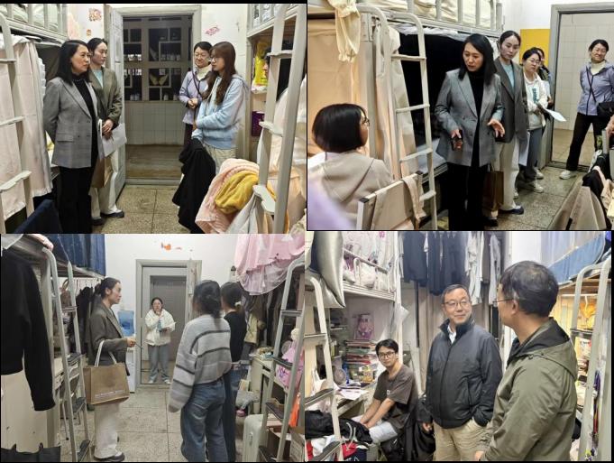 院领导和老师们先后走访了东区三栋女生公寓和东区九栋男生公寓。走访中细致查看宿舍居住环境,关切询问 “住宿是否习惯”“学习生活有无困难”,叮嘱大家注意用电安全、保持宿舍整洁,同时认真倾听对学院工作的意见建议,与同学们进行了亲切而深入的交流。