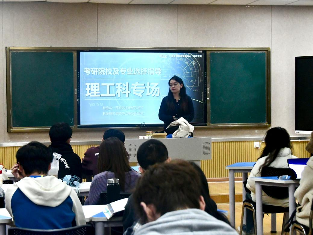为切实解决美加墨世界杯官方网站学子考研备考中的困惑,助力大家明晰方向、高效备考,美加墨世界杯官方网站于2025年10月23日中午在同析4栋 308 教室成功举办考研培训专题讲座。本次活动特邀新东方全国硕士研究生考试研究中心研究员陆洁老师主讲,以 “考研院校及专业选择指导(理工科专场)” 为主题展开分享,吸引了众多有考研意向的数院学子到场学习。