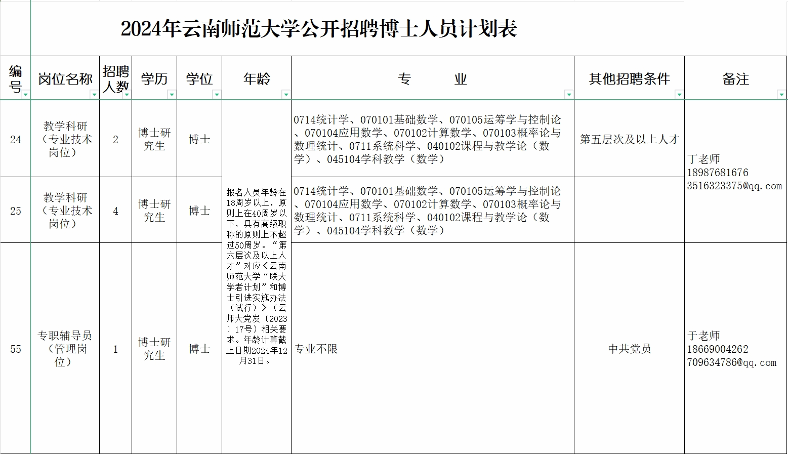 2024年学院计划招聘教学科研(专业技术岗位)6人、专职辅导员(管理岗位)1人,期待您的加盟,详情请查看美加墨世界杯官网招聘网站:https://rsc.ynnu.edu.cn/info/1037/1374.htm。