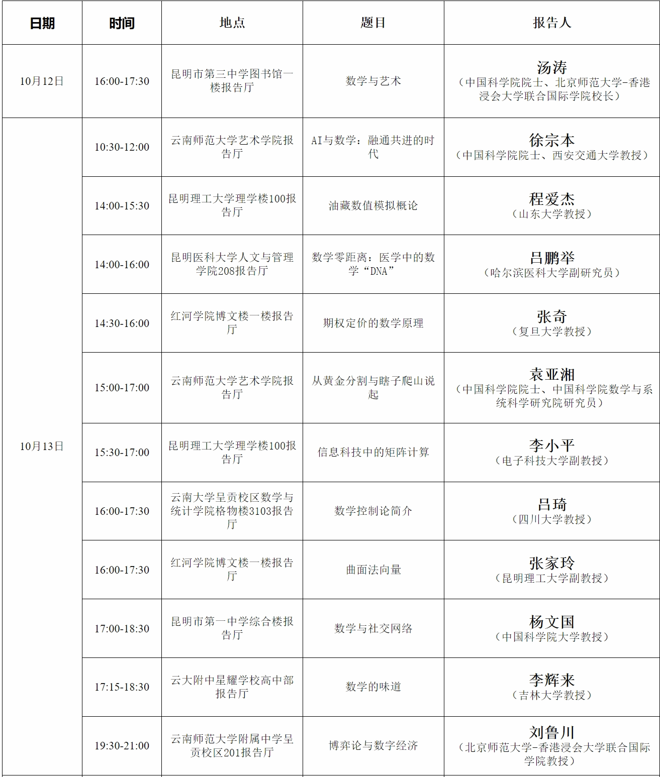 “中国工业与应用数学学会第二十一届年会”将于2023年10月12 - 15日在昆明海埂会堂举行。本届年会由中国工业与应用数学学会主办,美加墨世界杯官网承办,参会人数逾1800人。中国工业与应用数学学会第二十一届年会将交流工业与应用数学各研究方向的最新学术进展及其在产业界的应用成果,结合工业中急需解决的关键问题和难点问题,展开广泛的学术交流和讨论。会议期间将开展18场科普报告进校园活动。热忱欢迎广大师生和社会各界人士聆听和交流。