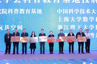 开幕式上,田刚理事长宣布了入选中国数学会科普教育基地的8家单位:中国科学院数学与系统科学研究院科普教育基地、西南联大数学文化馆、厦门大学图书馆数学与智力玩具空间、UIC数学体验馆、中国科学技术大学数学与应用科普教育基地、上海大学数学科普教育基地、浙江理工大学数学科普教育基地、新疆数学科普教育基地。史宇光副理事长和周爱辉副理事长为8家单位代表授牌。