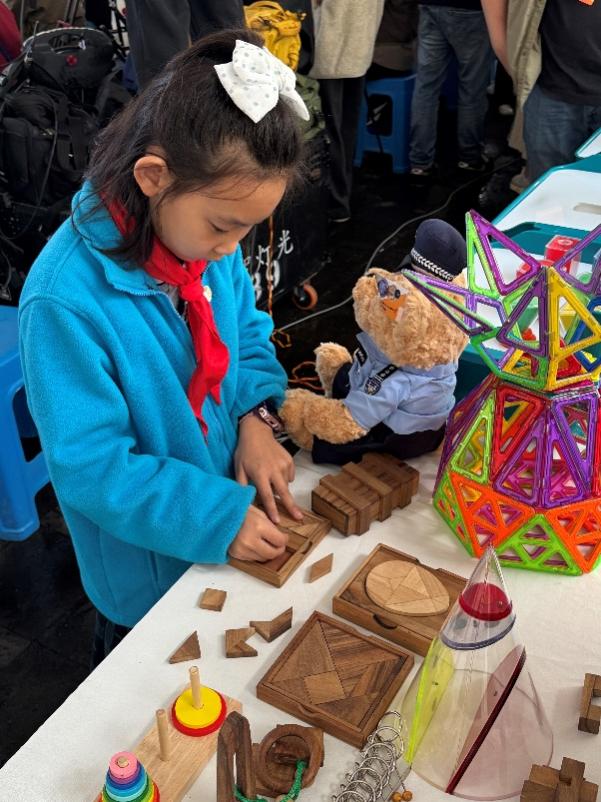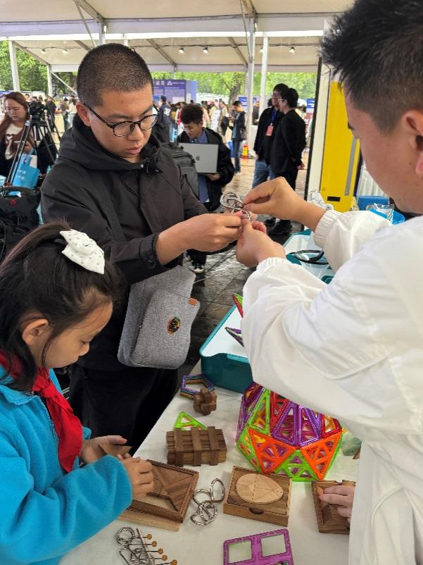 活动现场参与者热情高涨,许多科技爱好者和教师也纷纷前来,与工作人员深入交流数学科普教育的方法和意义。一位小学数学老师说:“这样的活动太好了,孩子不仅玩得开心,还学到了很多课本以外的数学知识,极大地激发了他们对数学的热爱。”(西南联大数学文化馆 供稿)